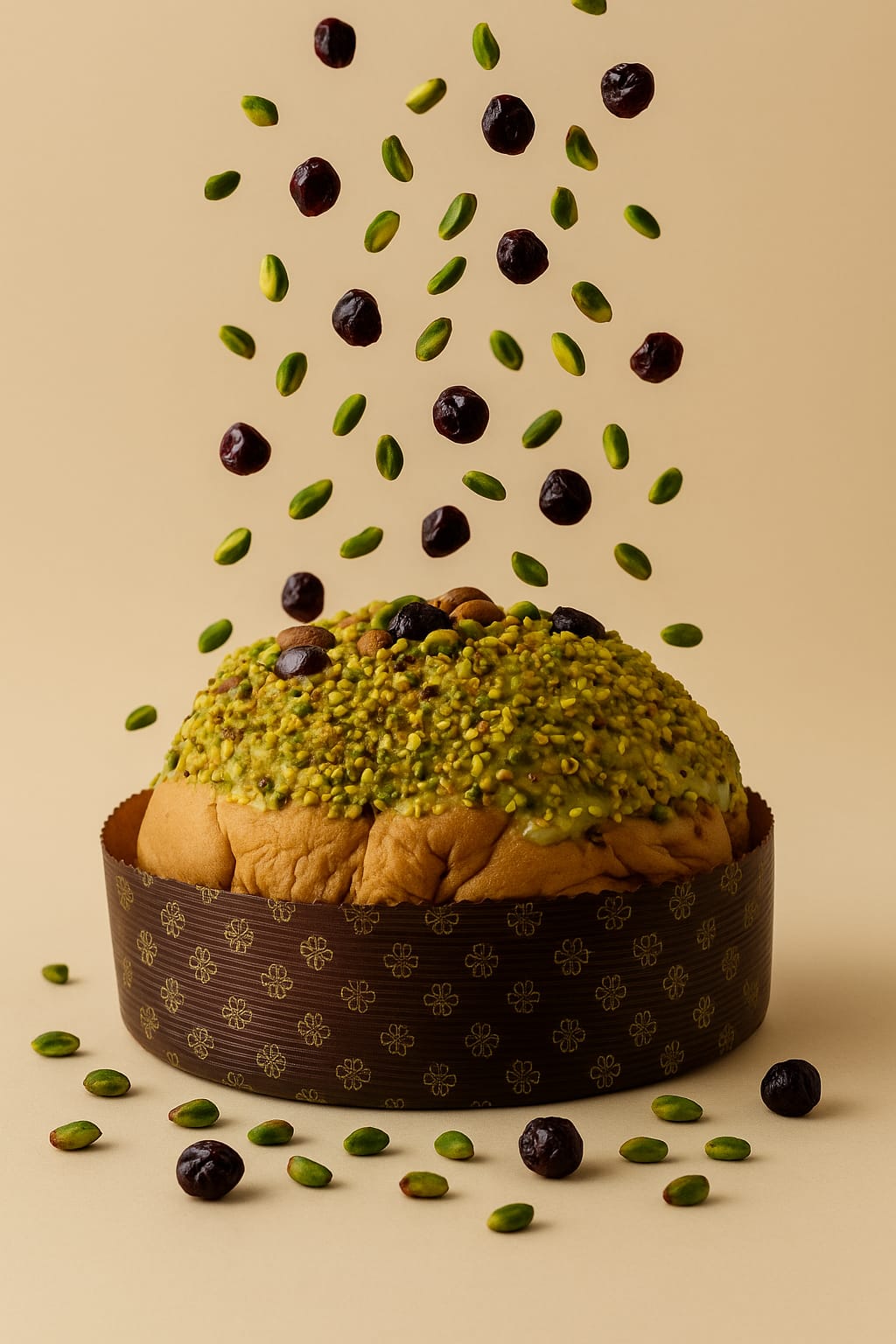 Panettone artigianale al pistacchio e amarene.