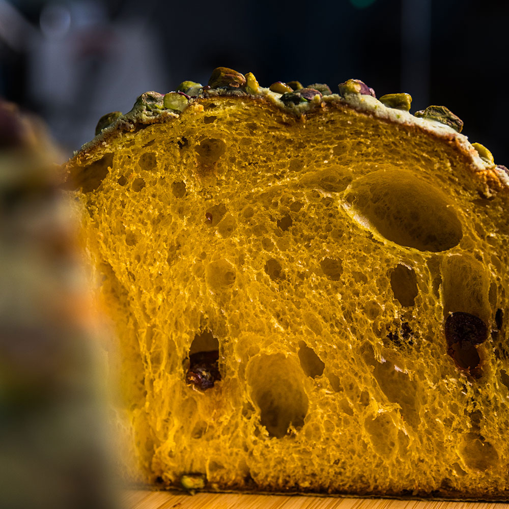 L’impasto viene preparato con lievito madre naturale rinfrescato quotidianamente e lasciato maturare per oltre 56 ore secondo la tecnica tradizionale dei tre impasti, tipica delle pasticcerie d’eccellenza.